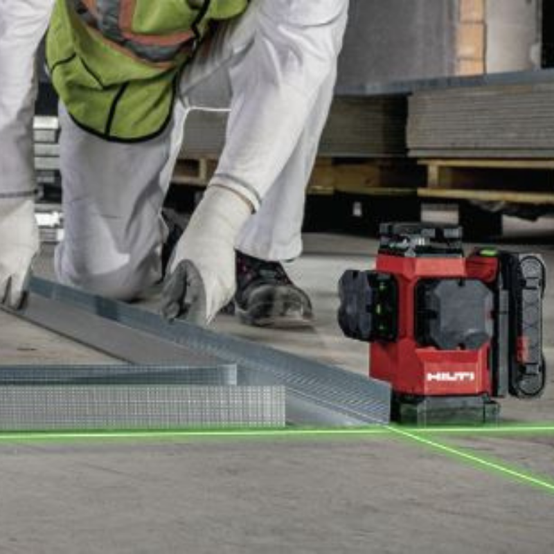 • Tek bir kurulum noktasında terazileme, hizalama, düzeltme ve su tesisatı için üç 360° lazer düzlemi (tek yatay ve iki dikey)